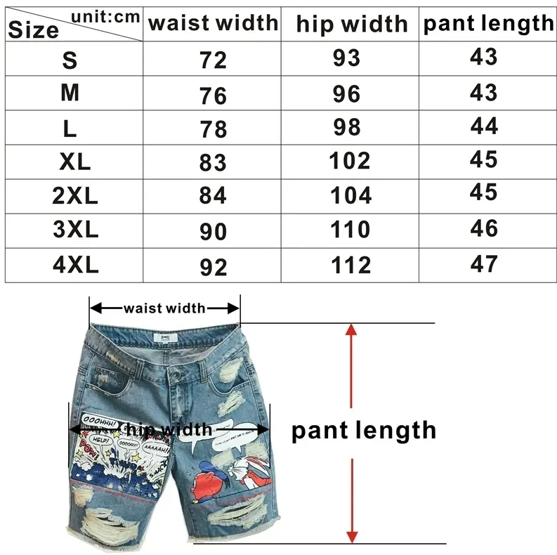 Fashion Mens Jeans Print Comic Jean Shorts