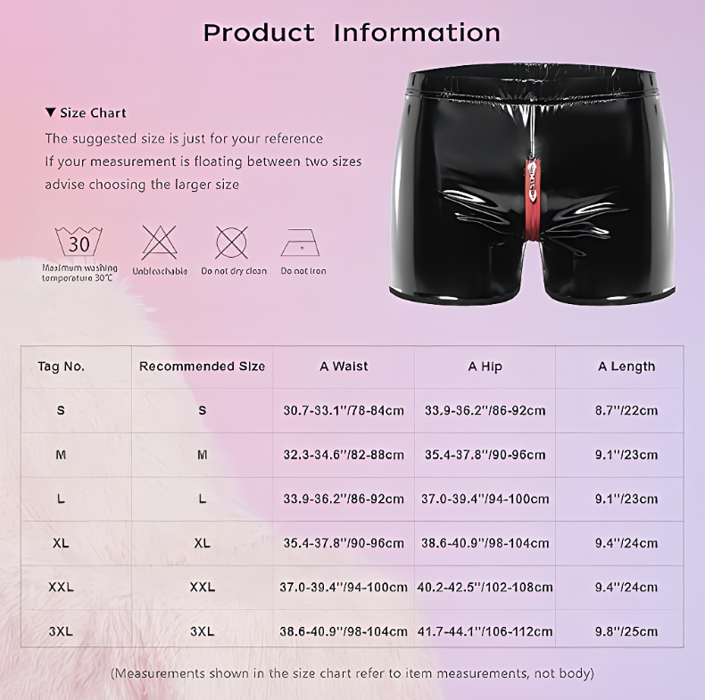 Crafted from skin-friendly polyester, this piece features a sleek, glossy finish with a soft, smooth texture for a comfortable and confident wearing experience. The material feels lightweight against the skin while delivering a striking wet-look shine.