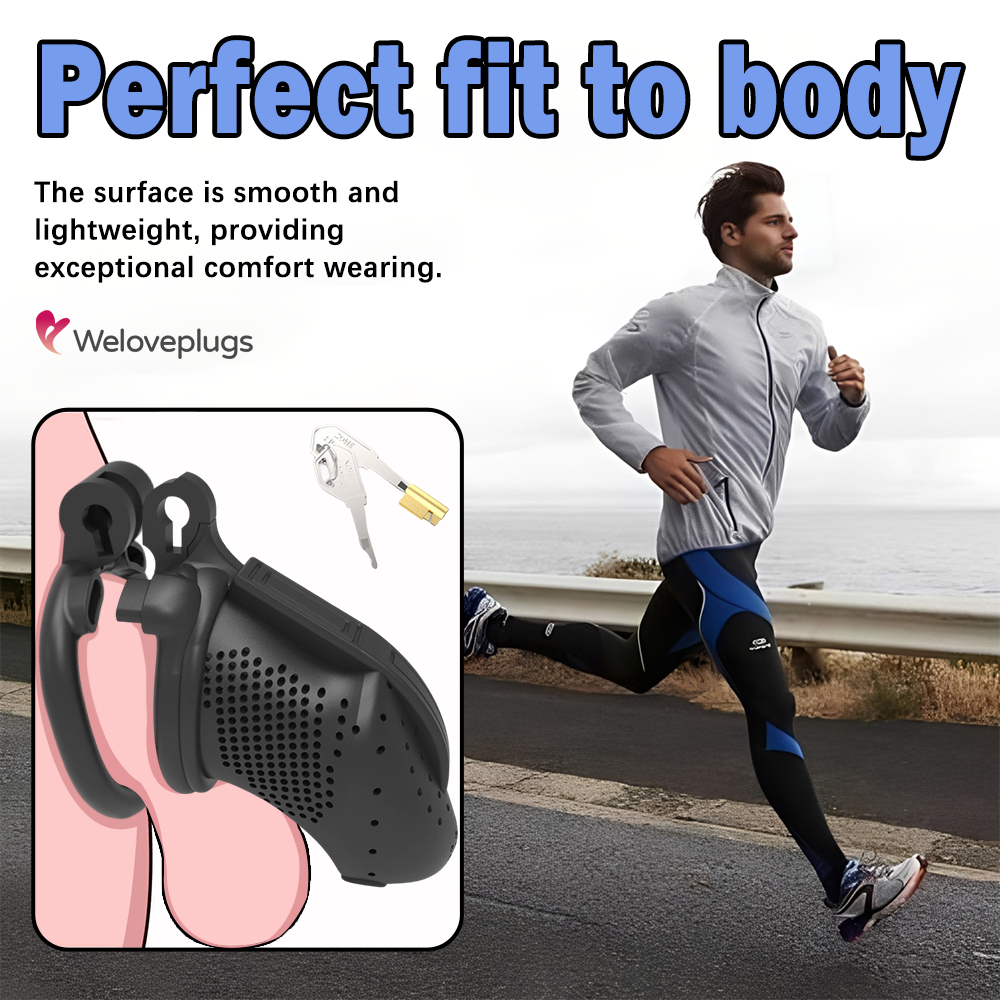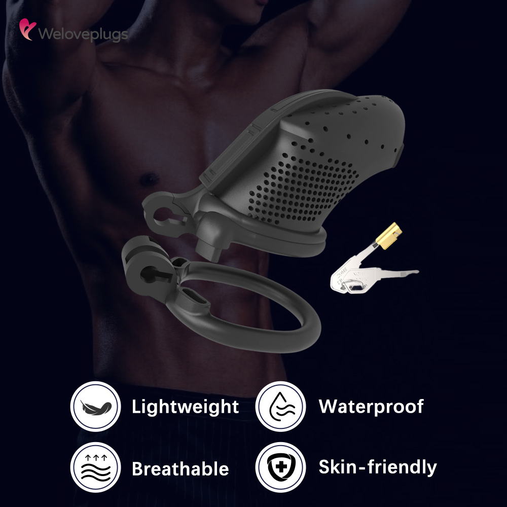 With plenty of holes in its body and head, this wearable rubber device is comfortable and breathable. It also has a slit in the center, so you can do your business without taking it off. A variety of rings are included, allowing you to wear the one that is most comfortable for you.