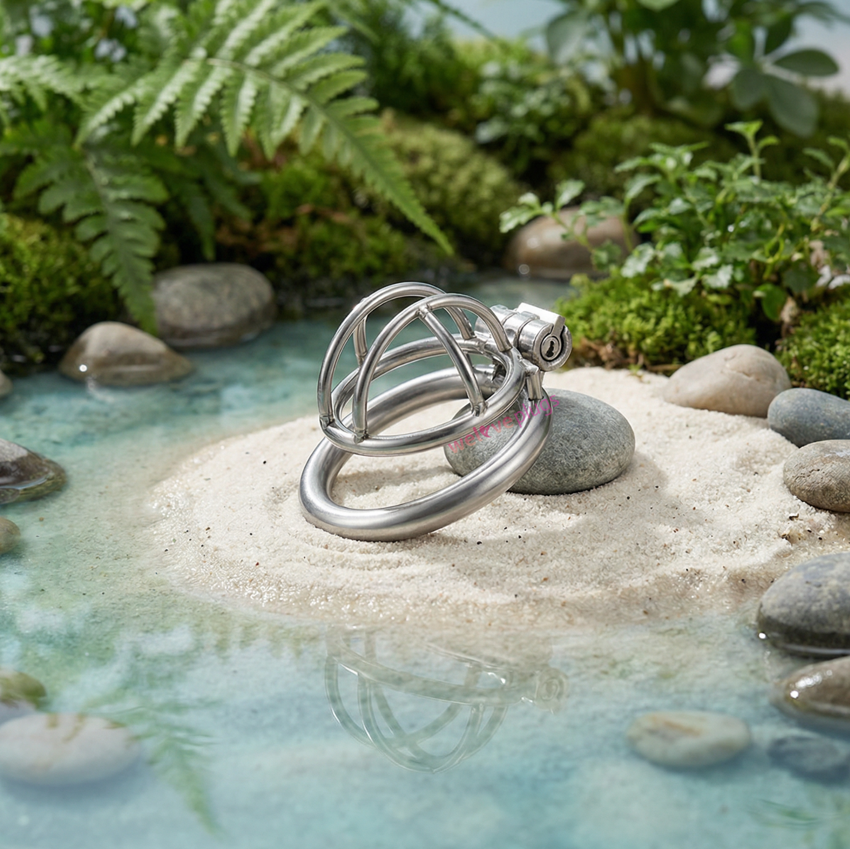 Unlike many full enclosure cages, this one features a half-moon design with plenty of gaps between bars for teasing and humiliation play. Three lengths are available to suit every teeny tiny willy. You will also find extra rings, a lock, and keys inside the package.