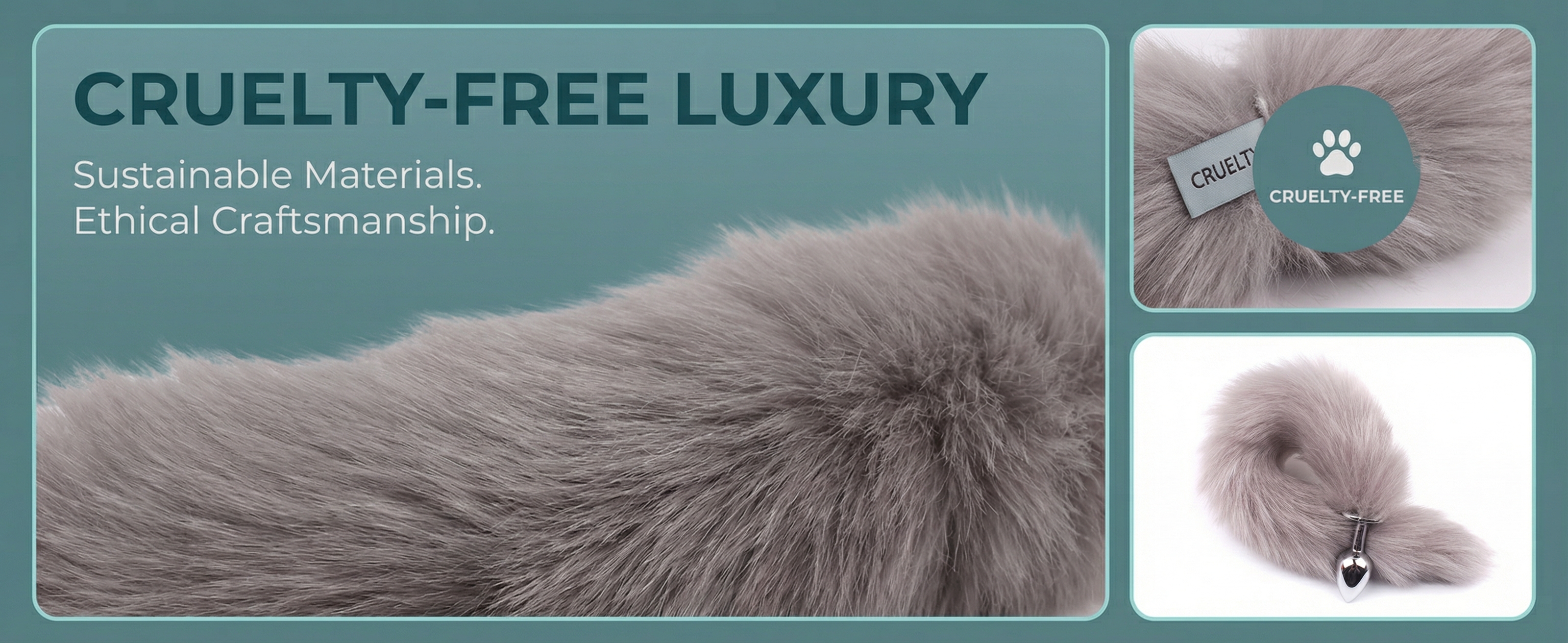 • Material: Smooth metal plug with soft, cruelty-free faux fox tail