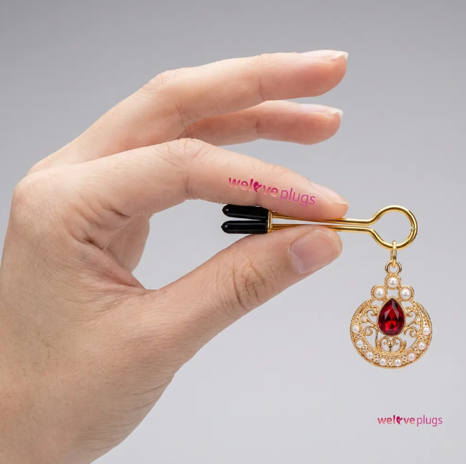 Precious Gemstone Design: Embrace the allure of precious gemstones with our Ruby Nipple Clamps. These clamps are adorned with beautiful ruby-inspired accents, adding a touch of sophistication and opulence to your intimate play. Let the deep red hues of the rubies enhance your aesthetic experience.