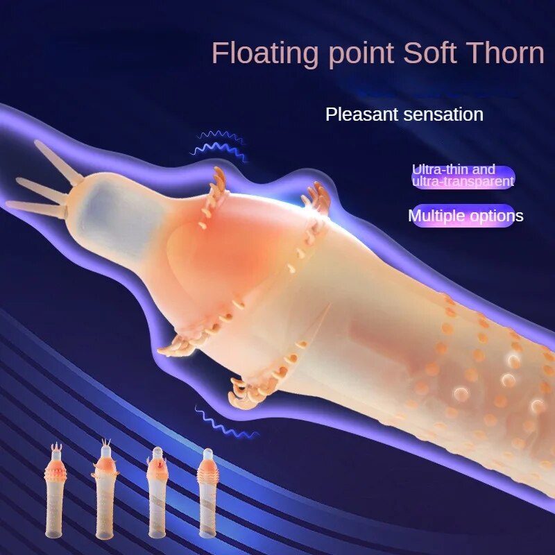 Vibrating Condoms Penis Sleeve Delay Ejaculation Thorn Dot G Spot Cover