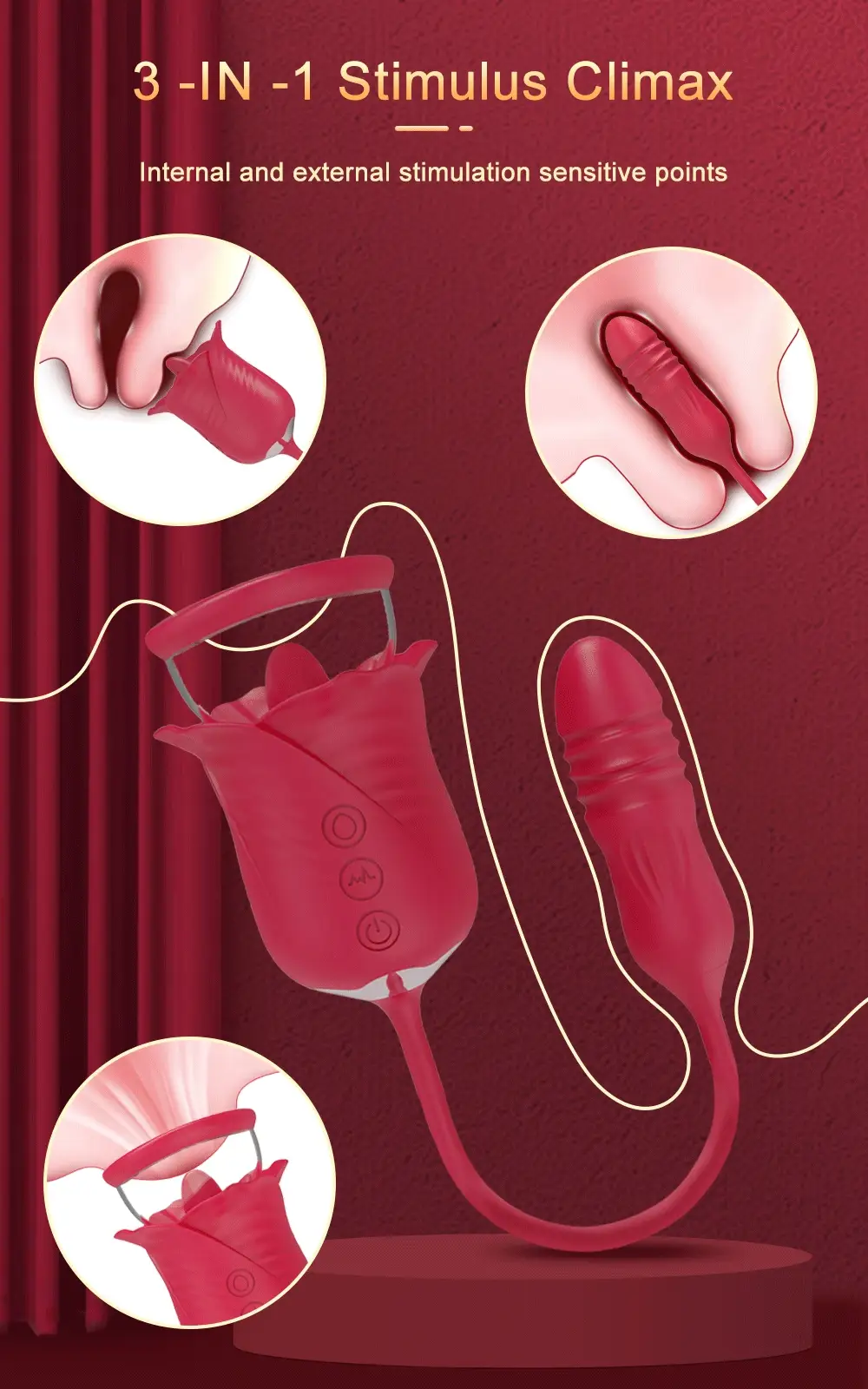 This rose-inspired pleasure toy is designed to deliver layered sensations through a smart, multifunctional design. By combining thrusting, vibration, and gentle suction, it adapts to different moods and preferences, offering a deeply personalized experience.